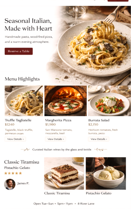 Clean structure for local search: opening hours, address, map, images, FAQs. This helps guests find you faster and reserve more quickly.