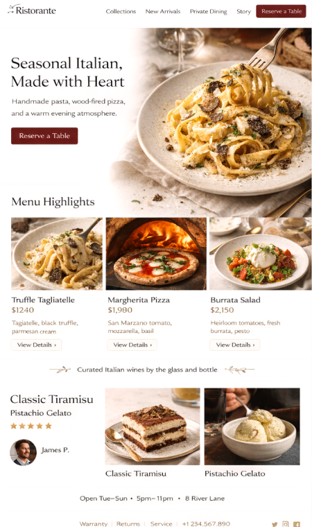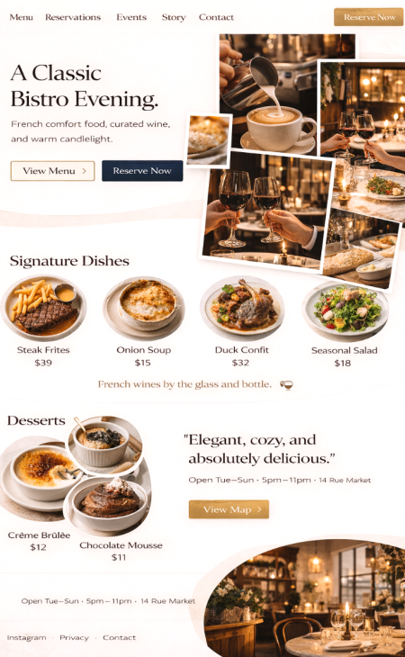 Guests should find you, understand quickly, and make reservations or orders fast. The structure, content, and tools are designed exactly for that.